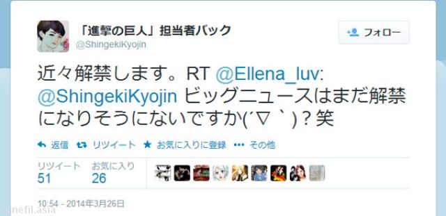 4月には最新刊発売、一番人気キャラ・リヴァイのスピンオフ「進撃の巨人 悔いなき選択」が発売されるなど、日本全国で社会現象を巻き起こしている人気漫画『進撃の巨人』だが、なにやらビッグニュースを解禁するらしい。ネット上ではいったい何が発表されるのか、憶測で大変な事になっている。詳細は下記までチェックイン![AOL]http://news.aol.jp/2014/03/28/shingeki/